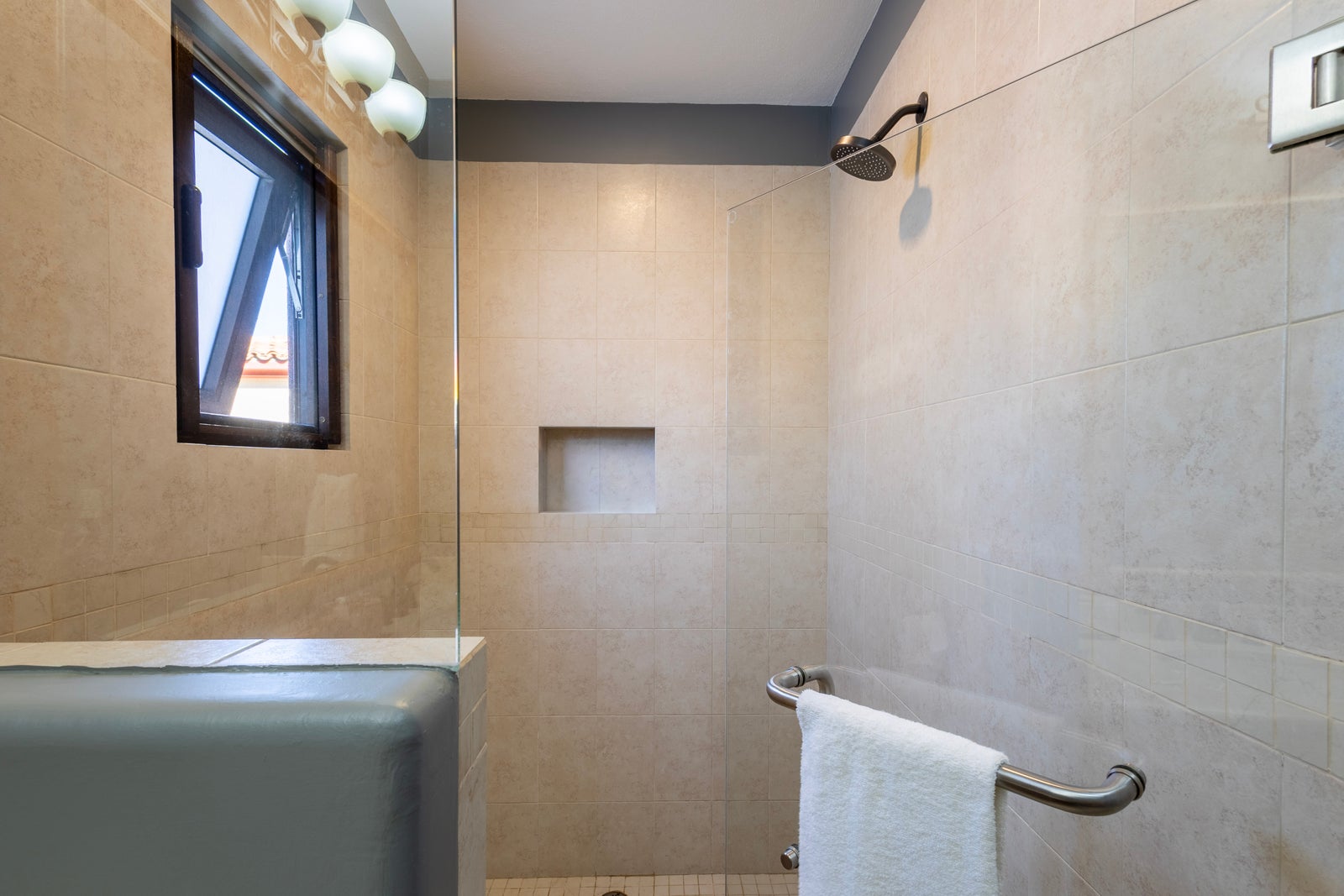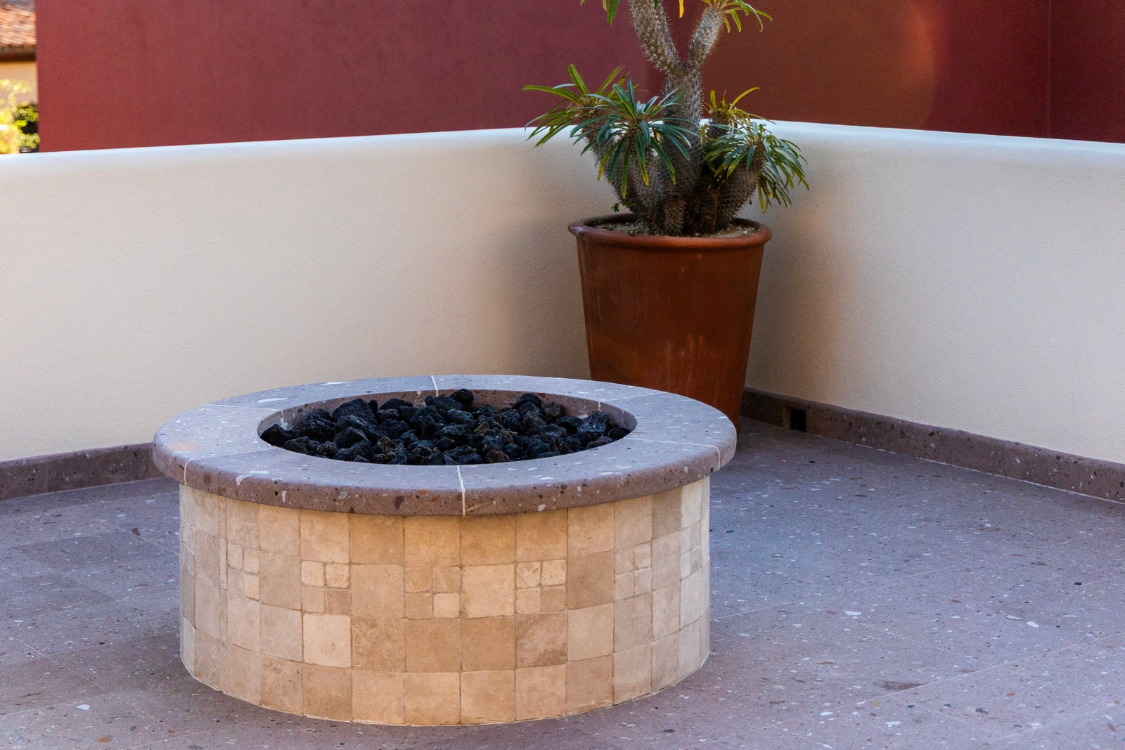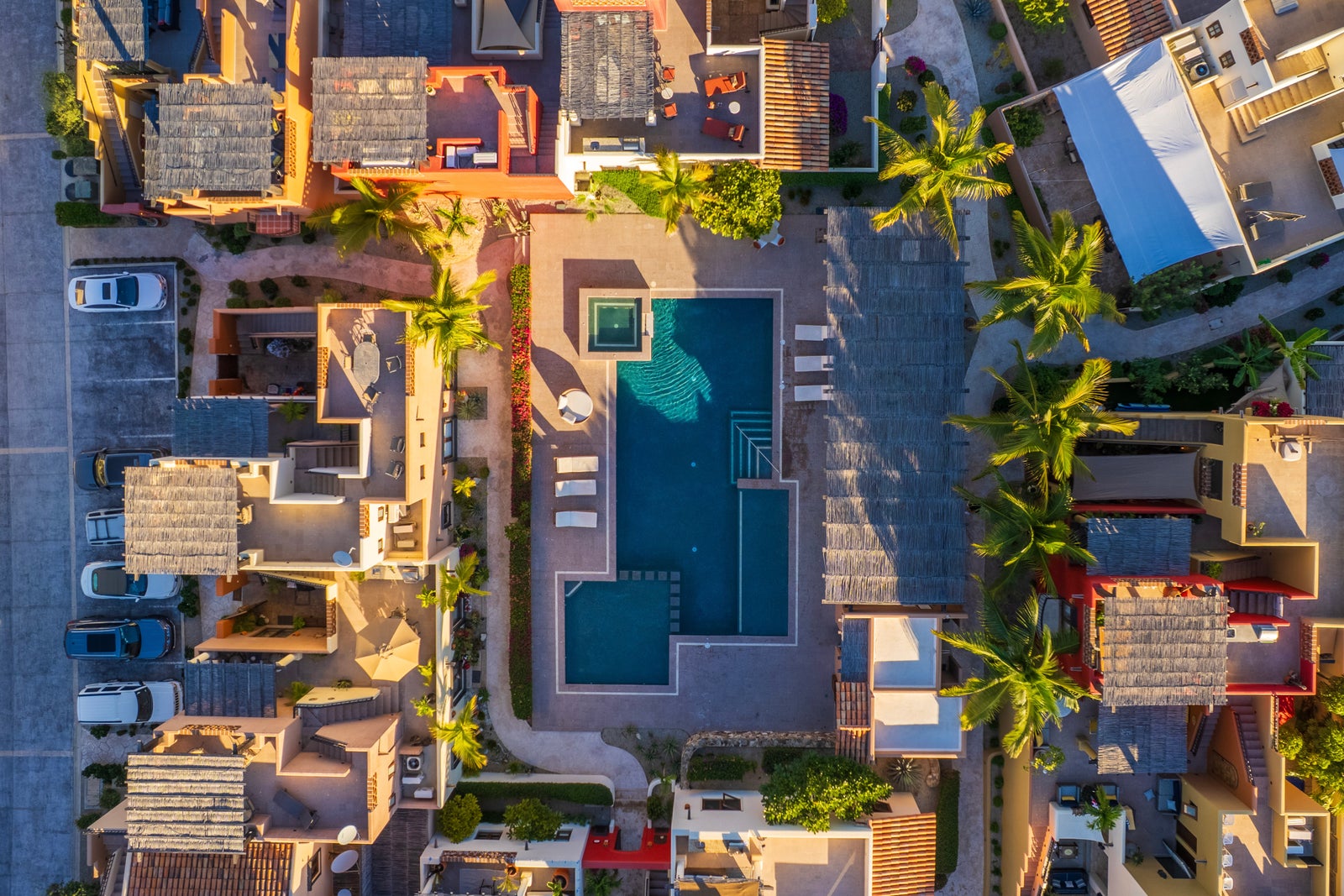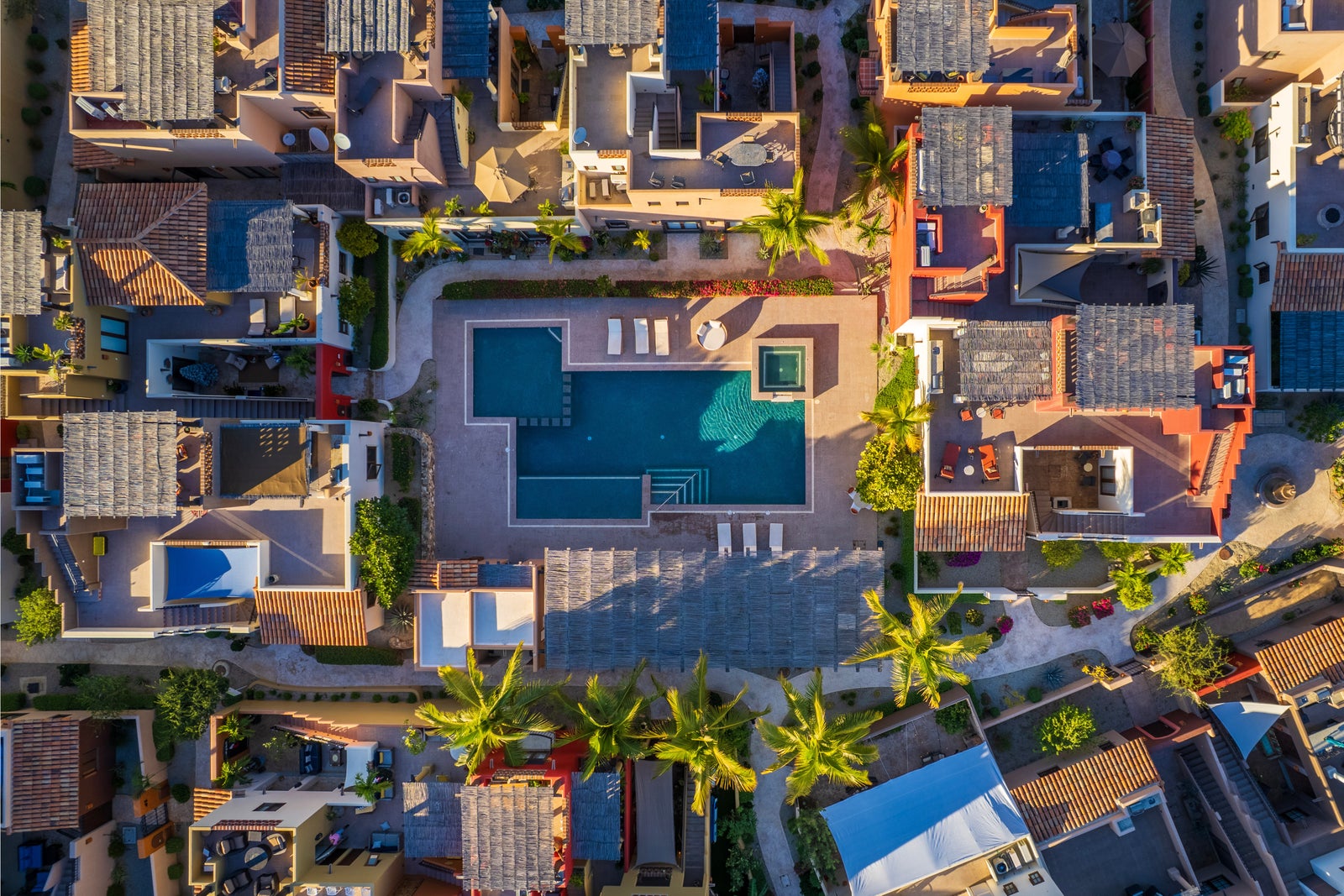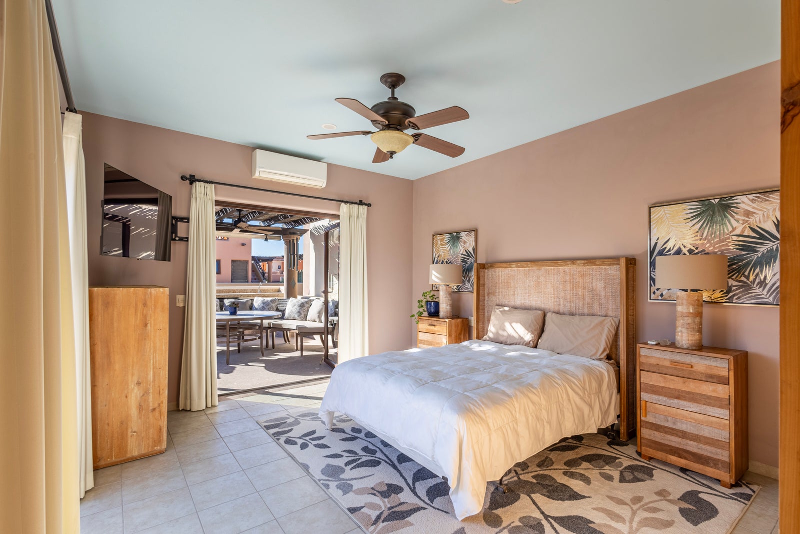 The upper roof deck is crowned by a handcrafted wooden pergola, creating a shaded retreat ideal for enjoying sunrise views over the Sea of Cortez and breathtaking desert mountain sunsets.